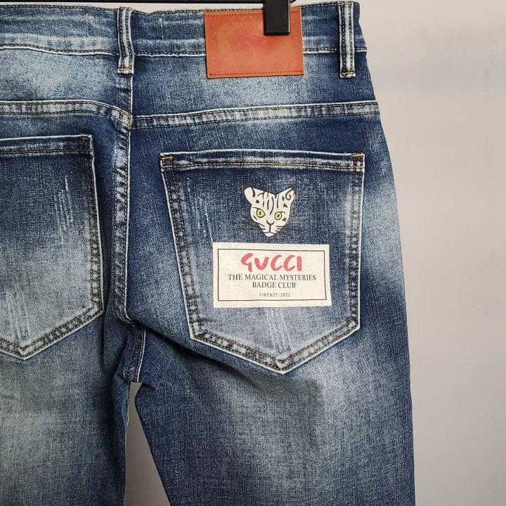 [국내배송]구찌 캣프린트 워싱 청바지