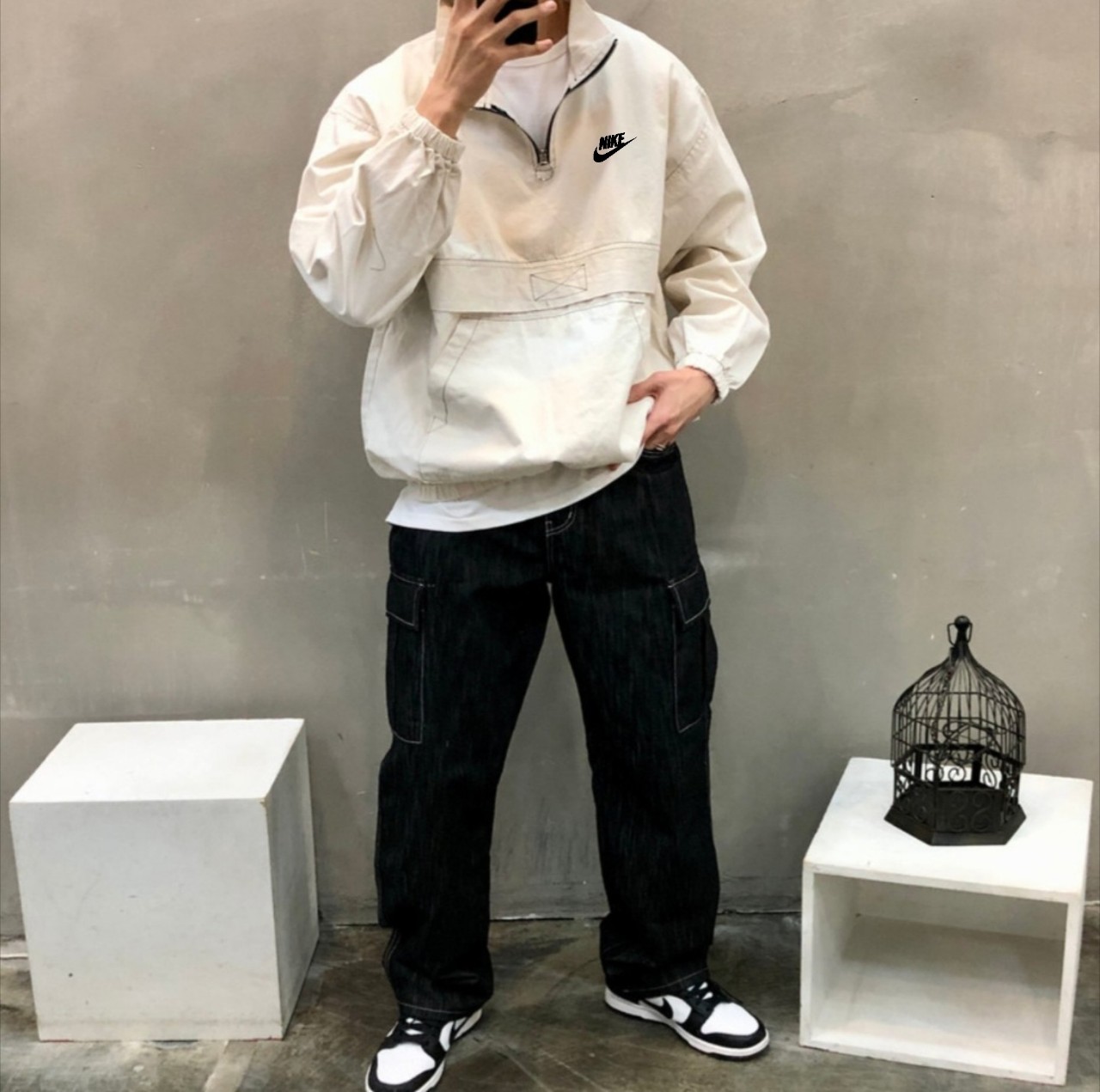 [국내배송]나이키 자수로고 스티치 구제워싱 아노락
