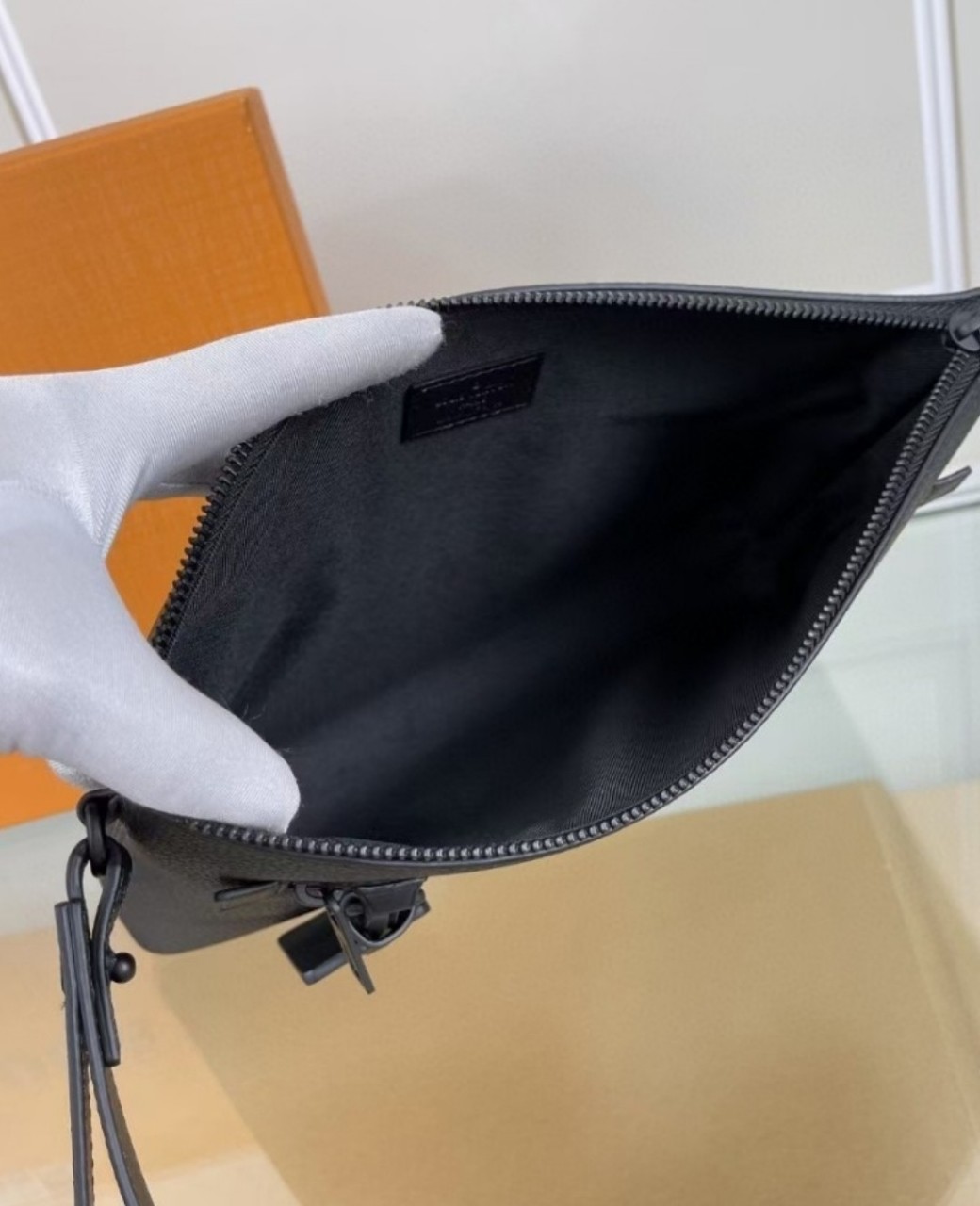 *블랙LV로고 지퍼 금속 디테일