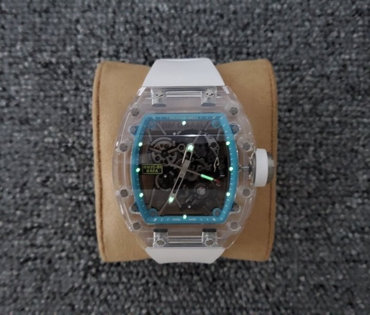 제작사: SONIC팩토리 버전: 최신 모델명: RM35-01 무브먼트: 스켈레톤 리얼뚜르비옹 수동 케이스: 크리스탈사파이어 글라스: AR코팅 사파이어 크리스탈 글라스 (기스X) 야광: 슈퍼루미노바 커스텀작업: 올분해후재조립작업 구성품: 본체, 케이스, 책자, 정품동일 풀구성