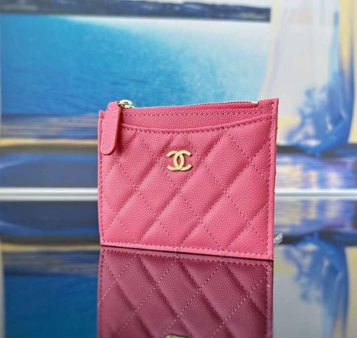 [국내배송]샤넬 클래식 지퍼 카드지갑 캐비어 핑크 금장