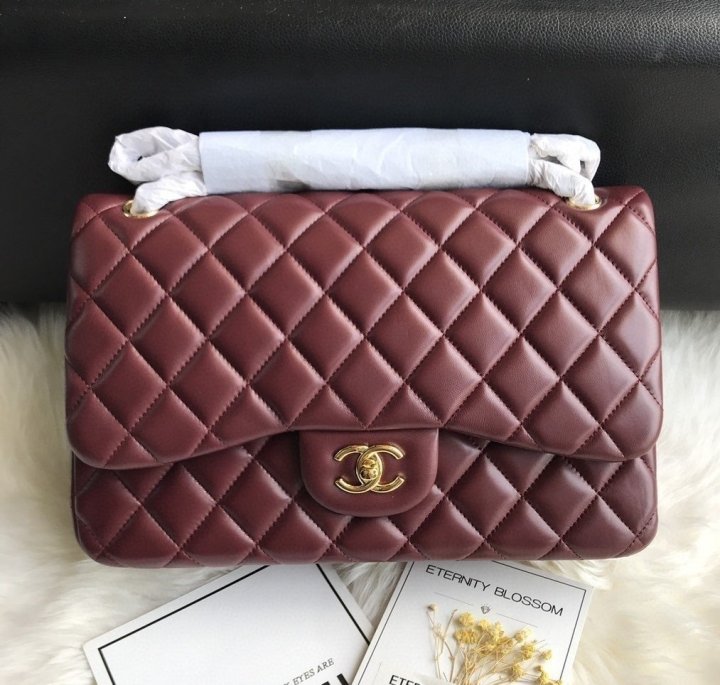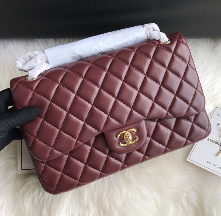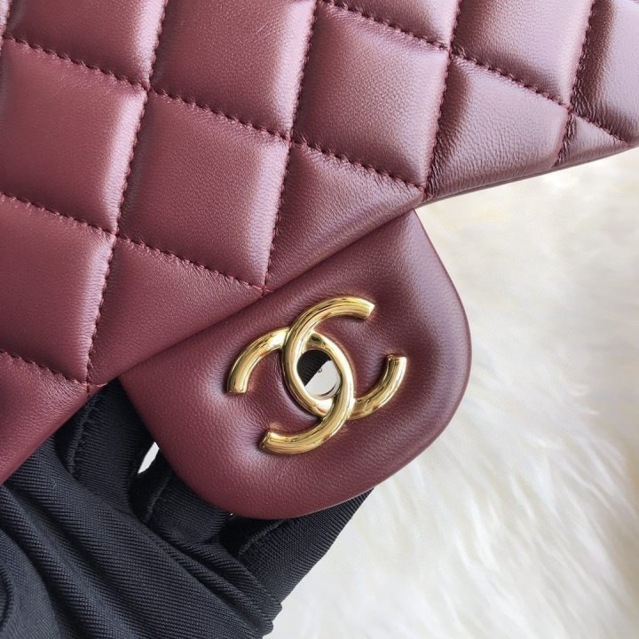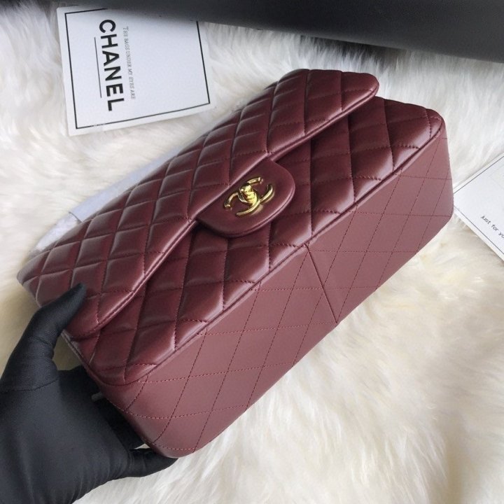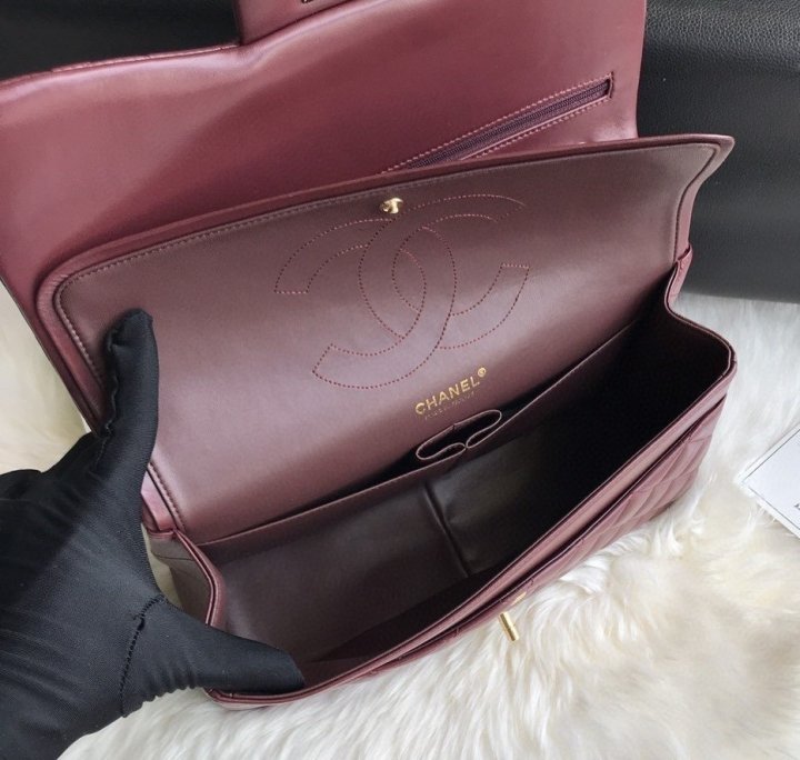 [국내배송]샤넬 클래식 플랩백 램스킨 버건디 금장 라지 A58600