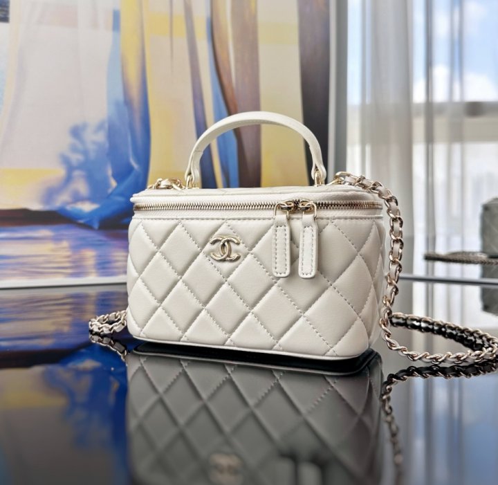 [국내배송]샤넬 탑핸들 베니티백 램스킨 화이트 금장 AP2199