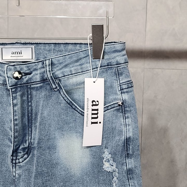 [국내배송]아미 블랙하트 연청 청바지