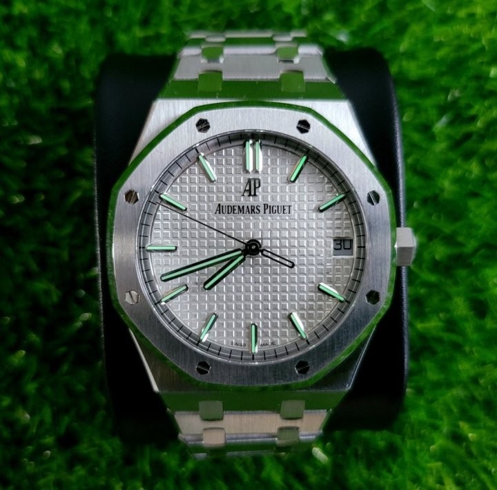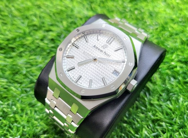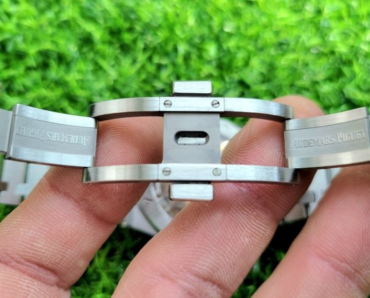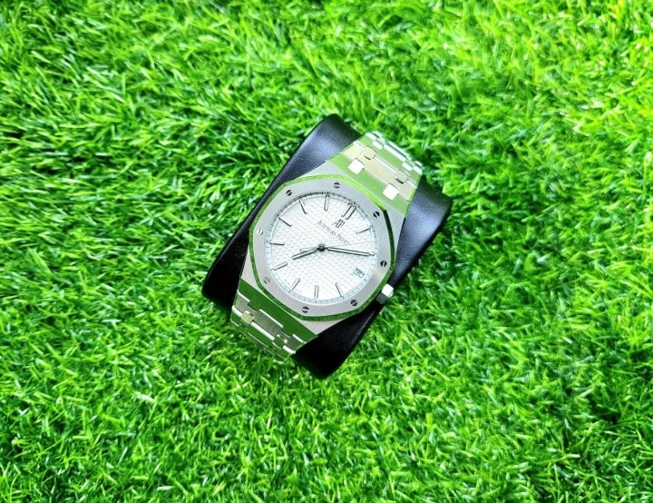 제작사:APS팩토리 버전:V2 모델명:오데마피게 15500ST 무브먼트:cal.4302 32석 완전복제 케이스:316L 고강도스틸 글라스:사파이어 크리스탈 글라스 (기스X) 야광:슈퍼루미노바 커스텀작업:1.올분해후재조립작업 2.로터저소음작업 구성품:본체,케이스,책자2, 정품동일풀구성