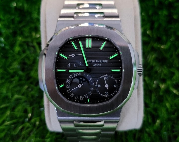 제작사: PPF팩토리 버전:최신 모델명:파텍필립 노틸러스 5712 5712-1A-001 스틸 무브먼트:CAL240 슈퍼클론 (황동로터) 케이스:316L 글라스: 사파이어 크리스탈 글라스 (기스X) 커스텀작업 1.올분해 후 재조립 작업 2.로터 저소음 작업 3.유리 포지션 다운작업