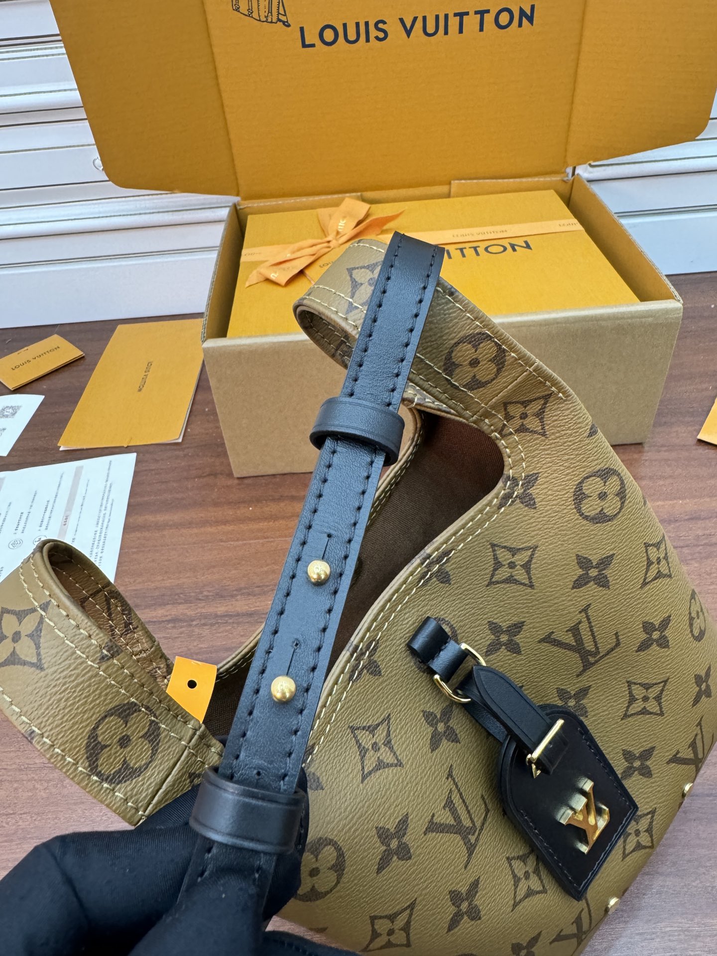 material :모노그램 리버스 코팅 캔버스 + 카프스킨