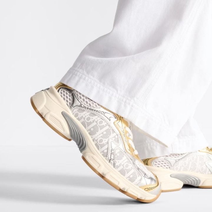 ▫️ 소재및 색상 화이트 오블맄 모티브 프린트 메시& 골드 실버톤 래미네잍 가죽 이펙트 페널