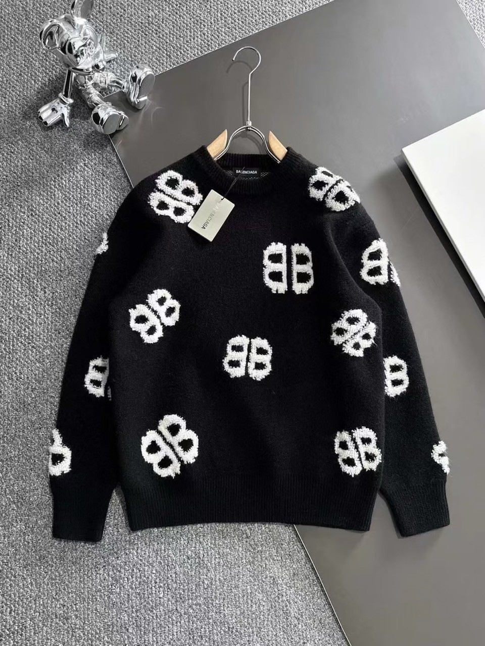 [국내배송]발렌시아가 신상 BB 자수로고 자가드 양모라운드 니트