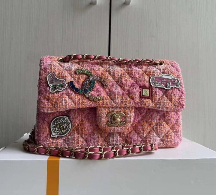 [국내배송]샤넬 클래식 스몰 트위드 플랩백 핑크 금장 수량
