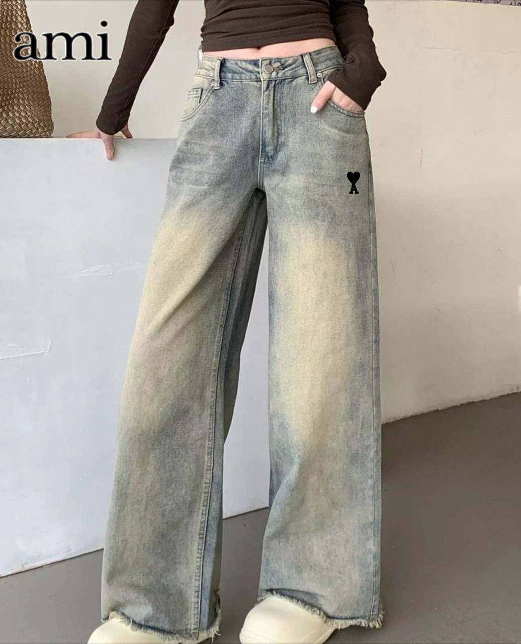 [국내배송]아미 블랙 자수 커팅 청바지