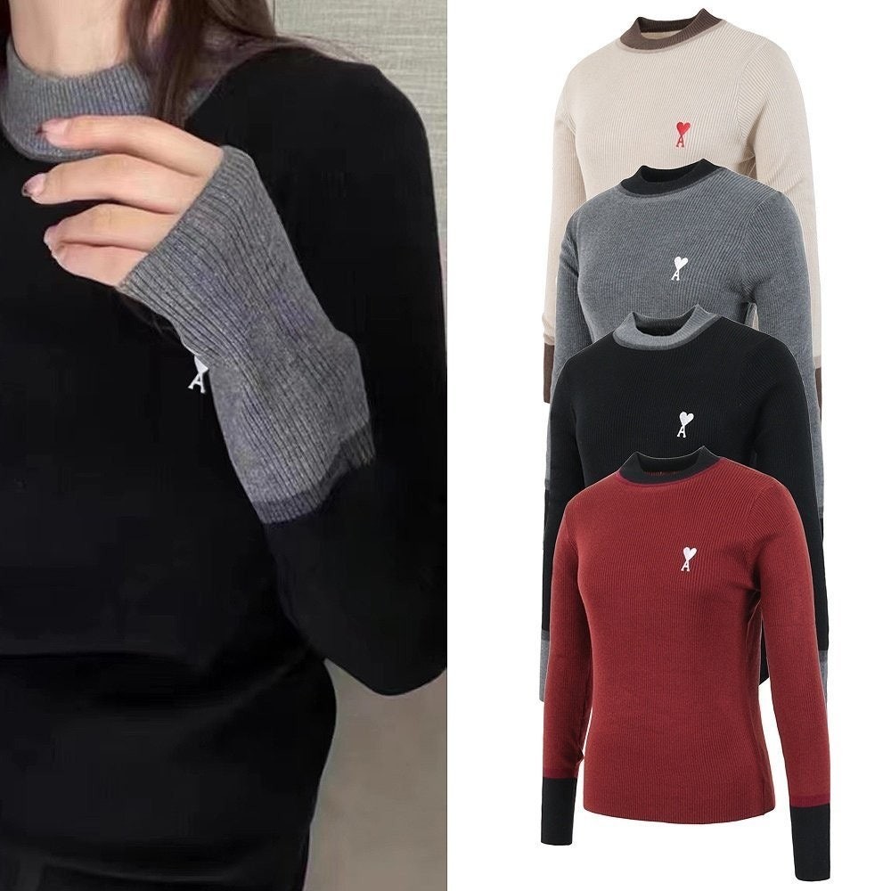 [국내배송]아미 하트 목 폴라배색 울 니트