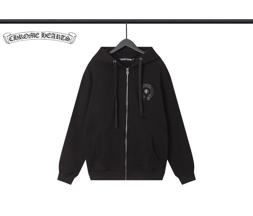 [국내배송]크롬하츠 십자가 가죽 라인 후드집업 티셔츠