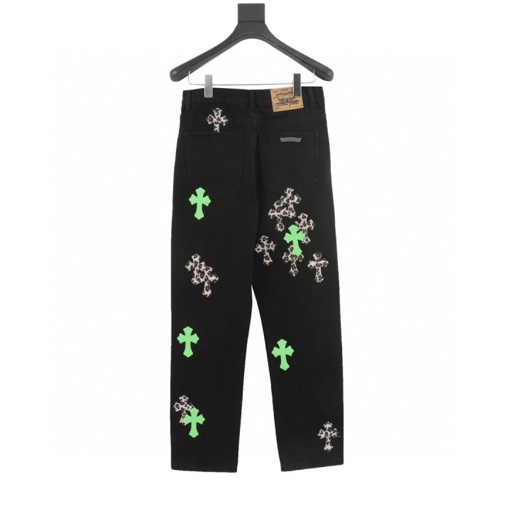 [국내배송]크롬하츠 클래식 가죽 라벨 십자가 데님팬츠