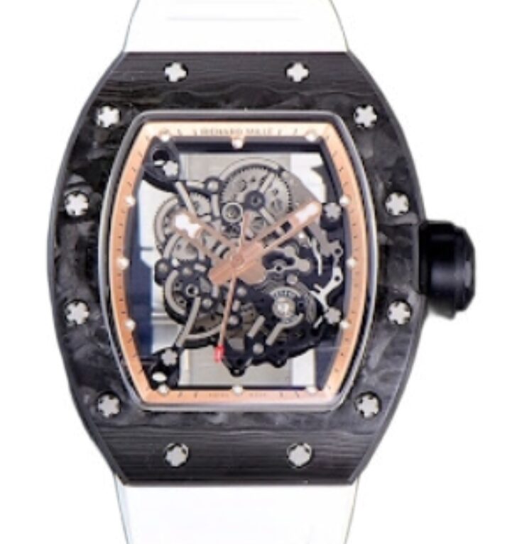 리차드밀 RM055 43mm Black Carbon Fiber White Rubber Strap Rose Gold Skeletonized Dial[BBR]